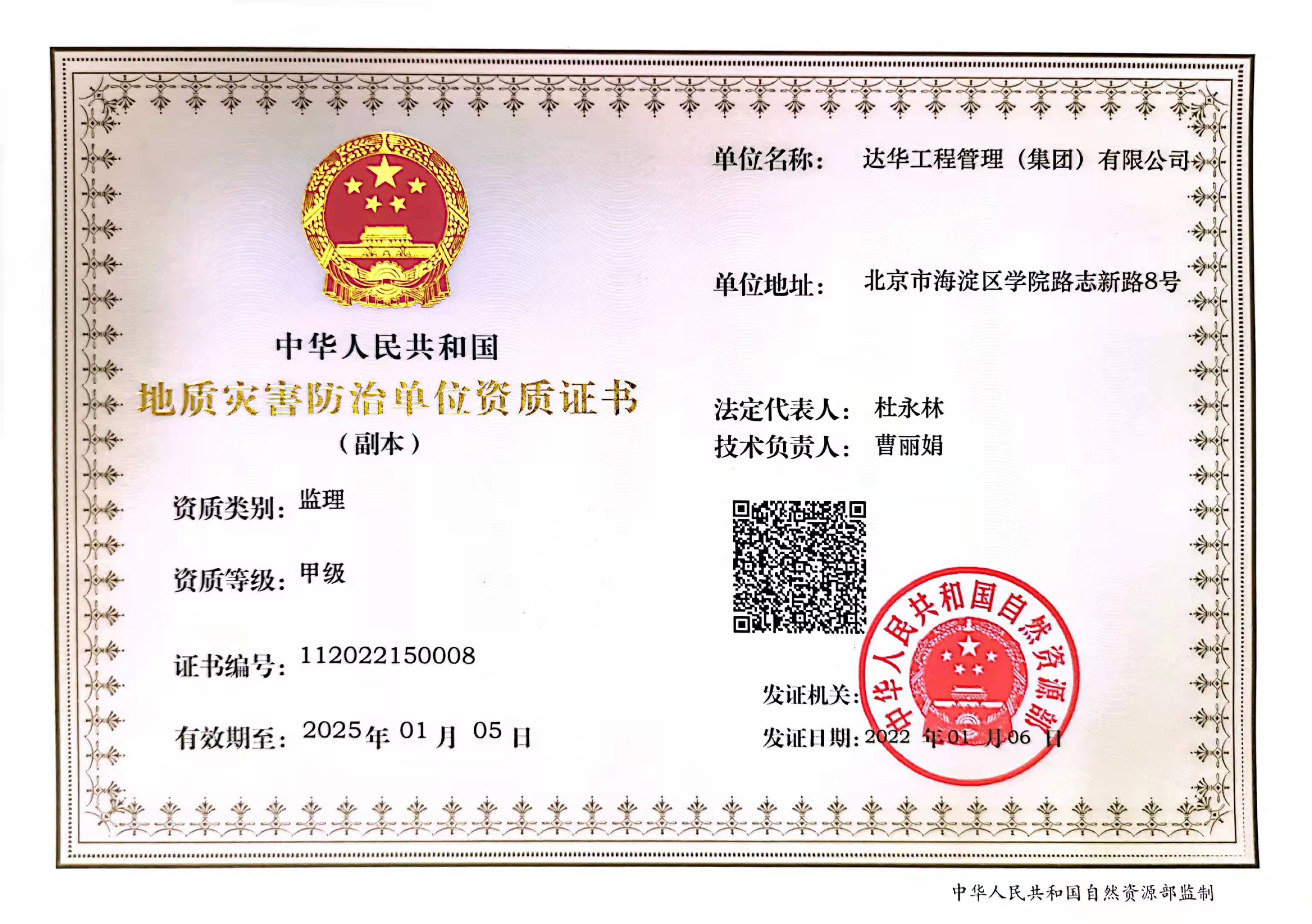 • 達(dá)華集團(tuán)榮獲中國自然資源部頒發(fā)的地質(zhì)災(zāi)害…